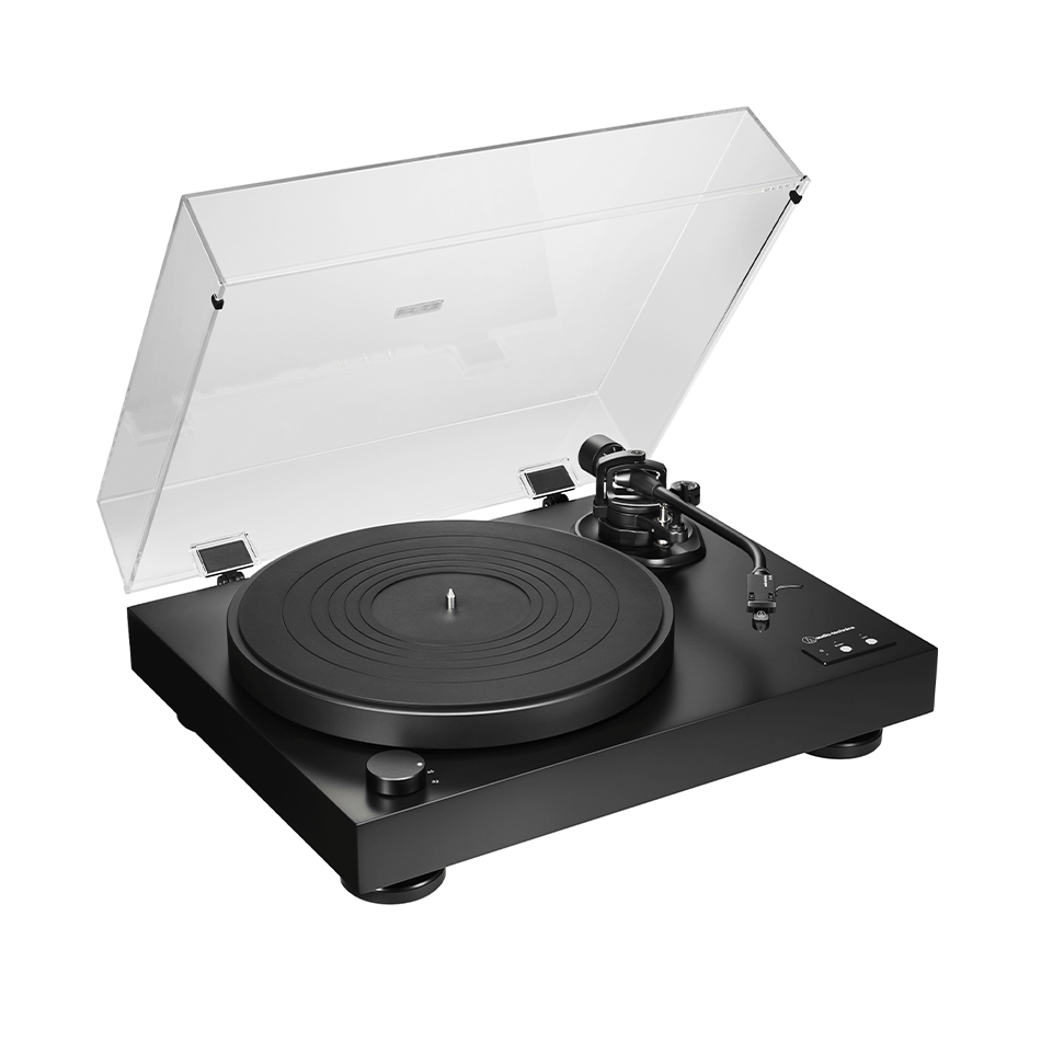 The turntable’s J-shaped aluminum tonearm, inspired by classic A-T models of the 1960s and ’70s, comes equipped with a newly designed AT-LT10 headshell and AT-VM95E BK (black) cartridge with 0.3 x 0.7 mil elliptical stylus, providing excellent channel separation and low distortion for outstanding tonal quality. For easy customization, the stylus can be replaced or interchanged with any of the five additional styli in the VM95 line, and the tonearm’s VTA (vertical tracking angle) adjustment and subcounterweight enable the use of a broad range of other cartridges.