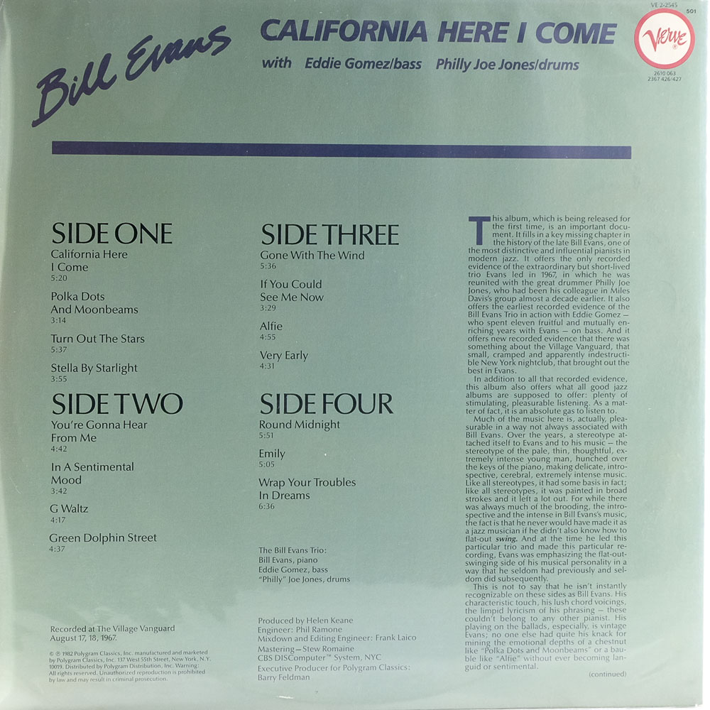 | Artist | Bill Evans with Eddie Gomez & "Philly" Joe Jones |