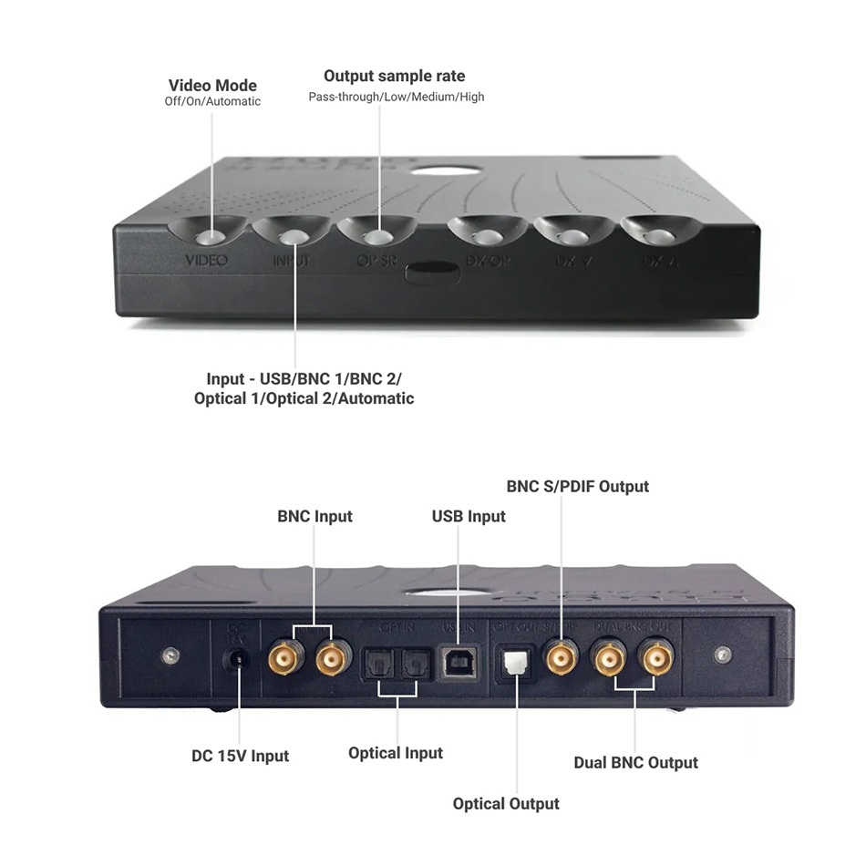 • Connectivity (output): 1x Galvanically isolated dual BNC (enables upscaling to the maximum 768kHz), 1x BNC S/PDIF and 1x Optical