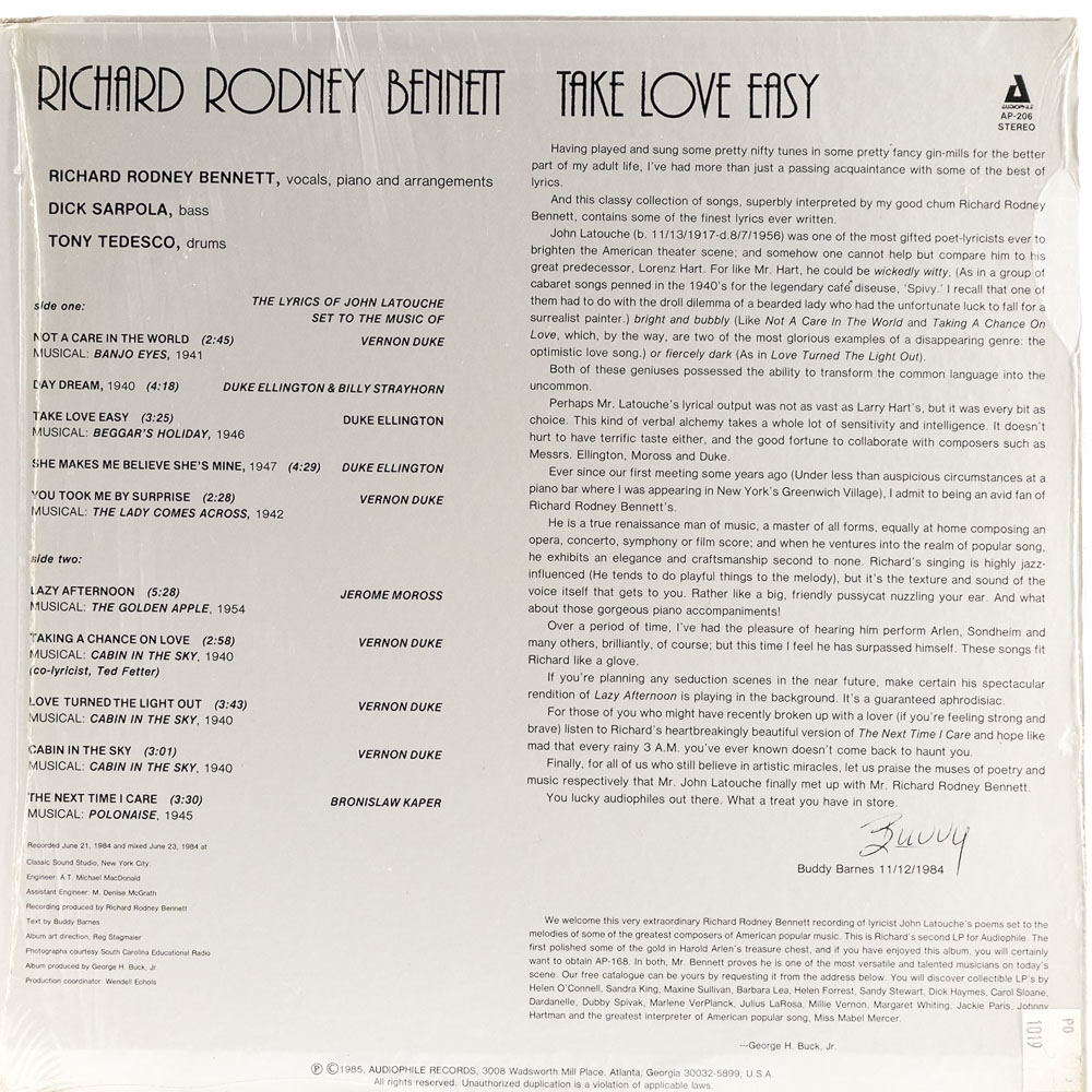 Richard Rodney Bennett, Richard Sarpola, Tony Tedesco – Take Love Easy