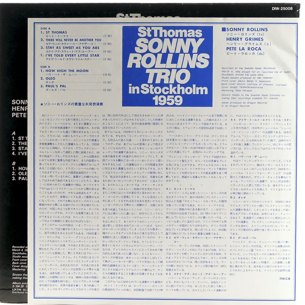 | Title | St Thomas – Sonny Rollins Trio In Stockholm 1959 |